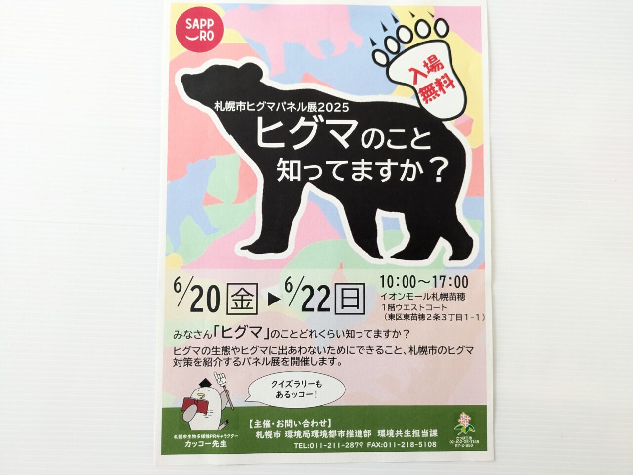 【札幌市東区】6月20日~22日、イオンモール札幌苗穂にて「札幌市ヒグマパネル展2025」が開催されます